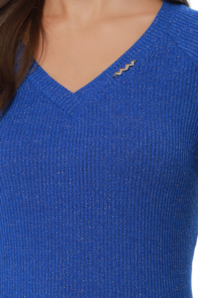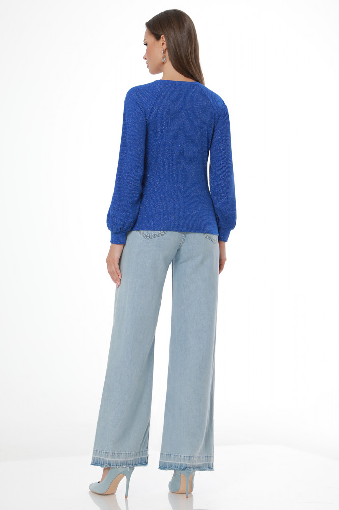 Идет в размер. Ткань пластичная, с люрексом, красивый цвет.Кофточка нарядная из-за цвета.