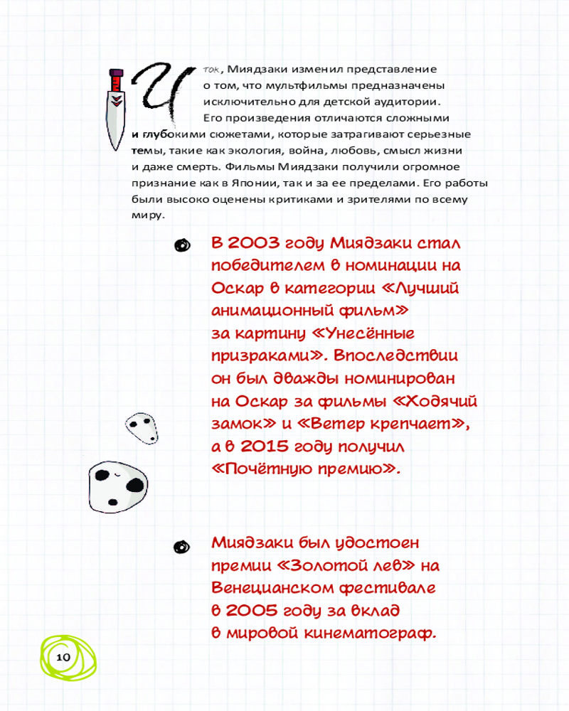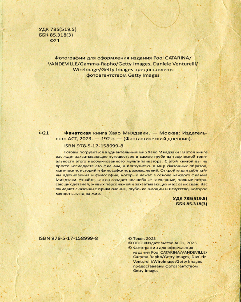 Фанатская книга Хаяо МиядзакиВ данный момент этот товар отсутствует в продаже. Возможно, у нас найдется аналогичный или похожий товар здесь. Серия: Фанатский дневник Готовы погрузиться в удивительный мир Хаяо Миядзаки? В этой книге вас ждет захватывающее путешествие в самые глубины творческой гениальности этого необыкновенного мультипликатора. С этой книгой вы не просто исследуете его фильмы, а погрузитесь в мир сказочных образов, магических историй и философских размышлений. Откройте для себя тайны вдохновения и философии, которые лежат в основе каждого фильма Миядзаки. Узнайте, как он создает волшебные вселенные, полные потрясающих деталей, живых персонажей и захватывающих массовых сцен. Вас ожидают сказочные приключения, глубокие эмоции и искусство, которое меняет взгляд на мир. |