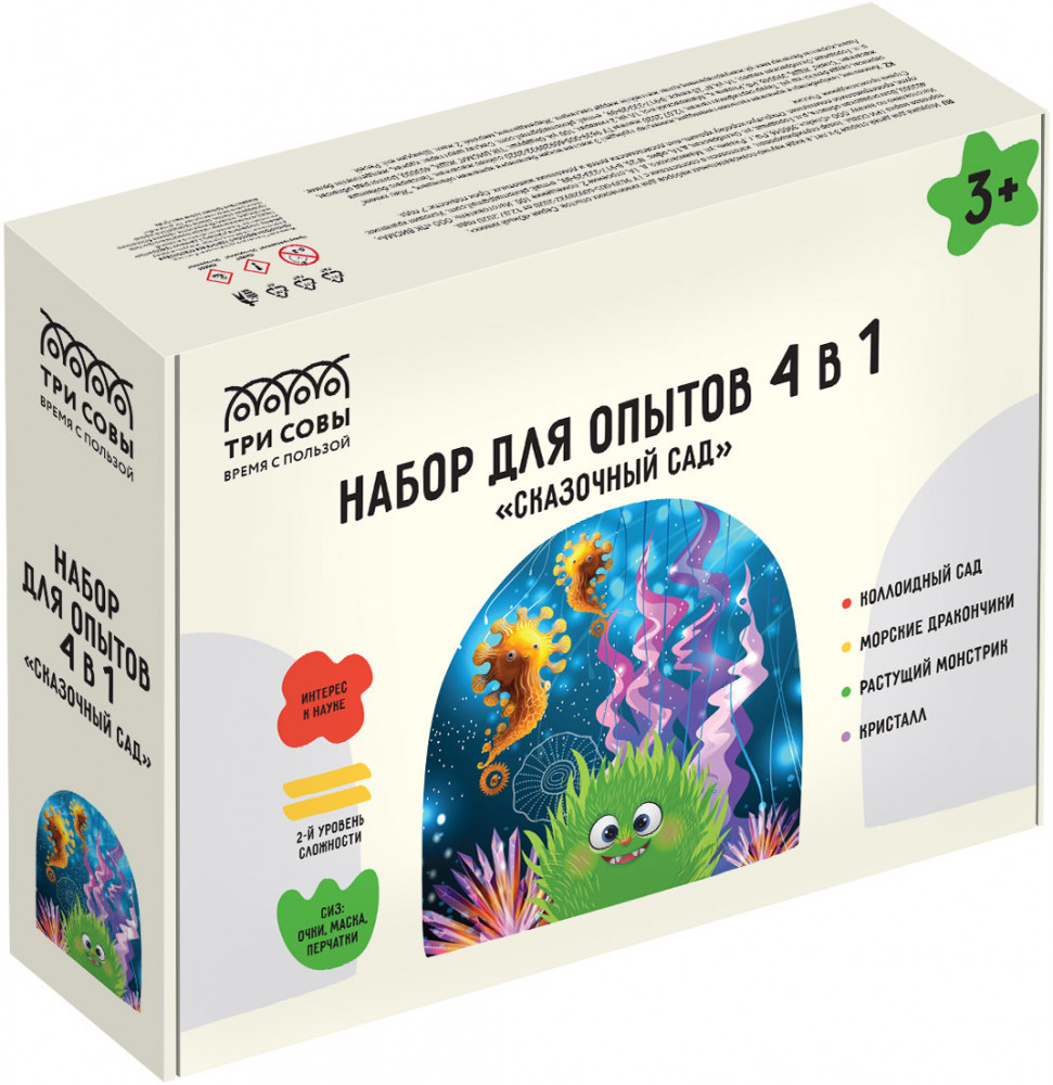 Набор включает в себя четыре красочных опыты: коллоидный сад, морские дракончики, растущий монстрик, кристалл. Набор для опытов познакомит ребенка с химическими и физическими законами, разовьет любознательность, позволит самостоятельно провести первые научные эксперименты дома! Подготовка опытов не займет много времени и не потребует усилий. Подробная инструкция с указанием техники безопасности и пошаговыми действиями, а также средства индивидуальной защиты (очки, перчатки, маска) входят в состав набора.