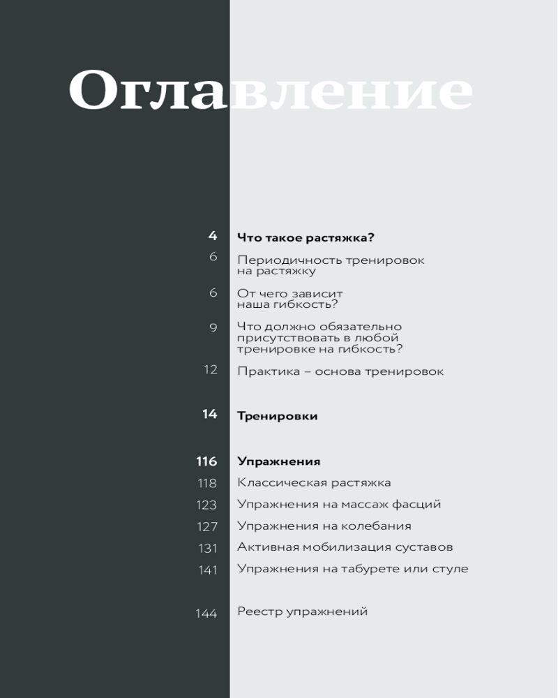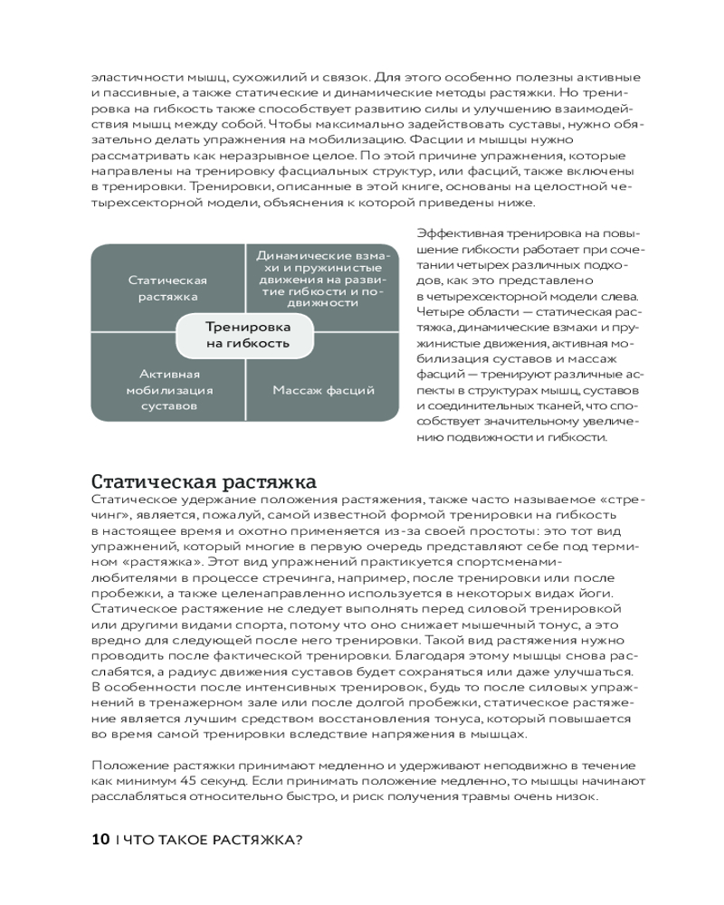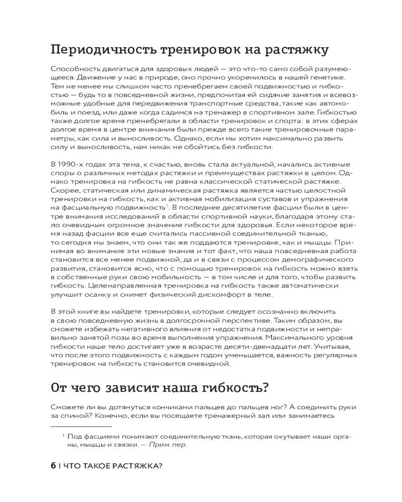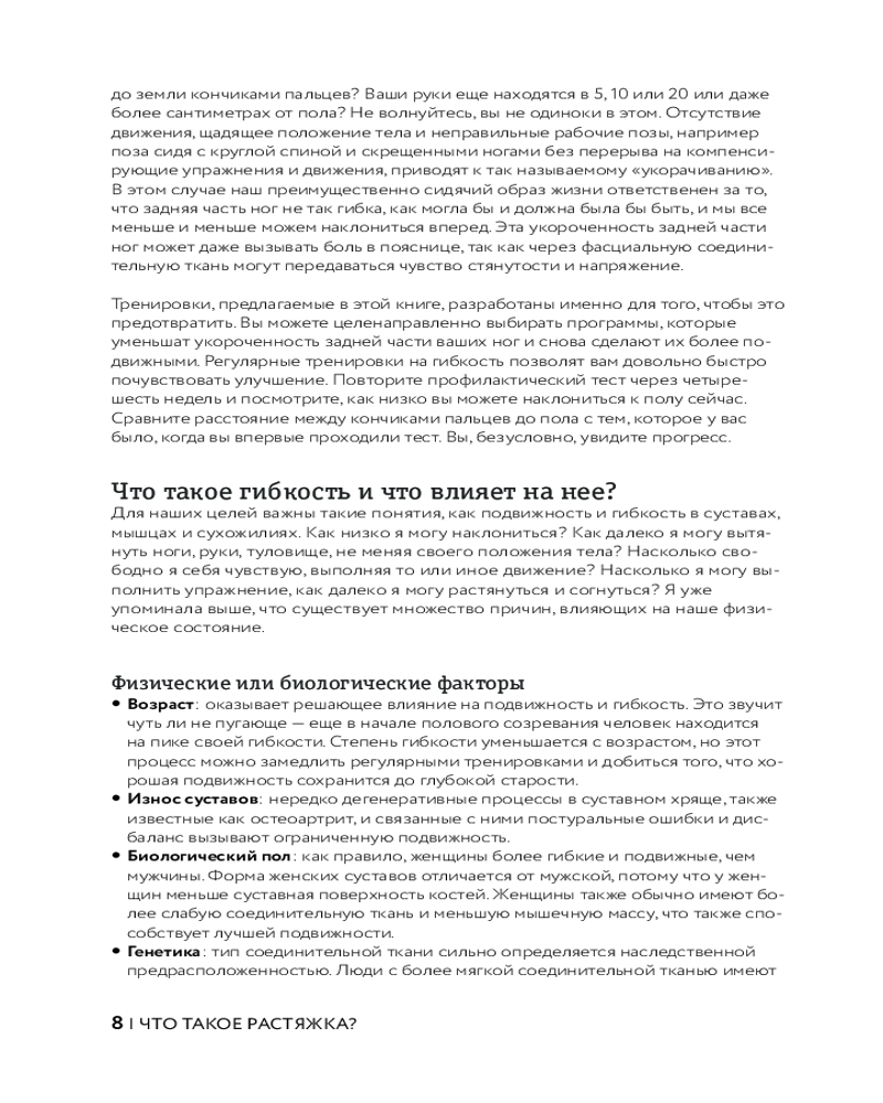 Отличная книга - много упражнений подобраны по разным запросам - "при ишиасе","для расслабления шеи" и т.д.Есть разделы по начальному уровню растяжки и более продвинутому. В конце описание подробное каждого упражнения. Просто и эффективно
