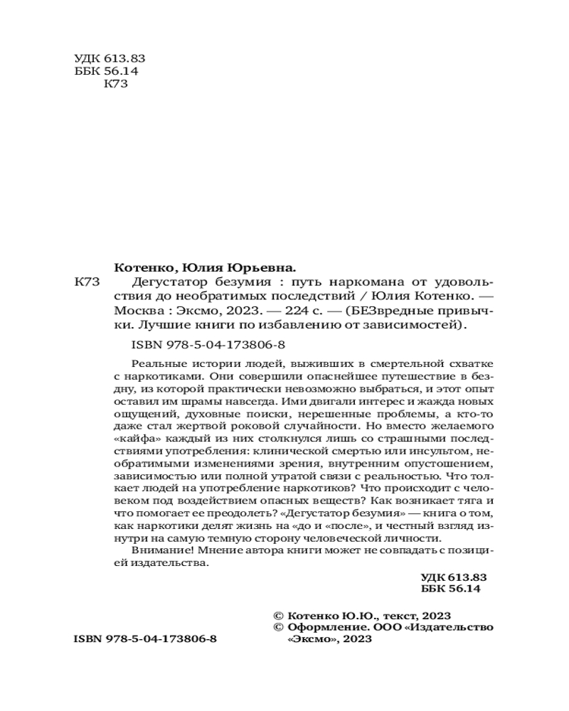 | Дегустатор безумия. Путь наркомана от удовольствия до необратимых последствий Юлия Юрьевна Котенко +143 (бонуса)