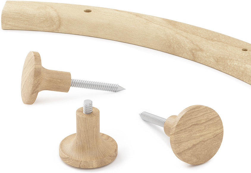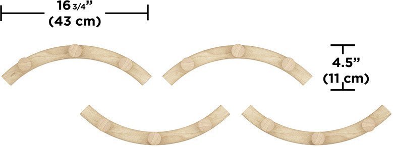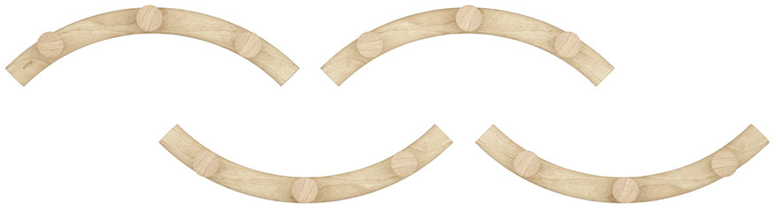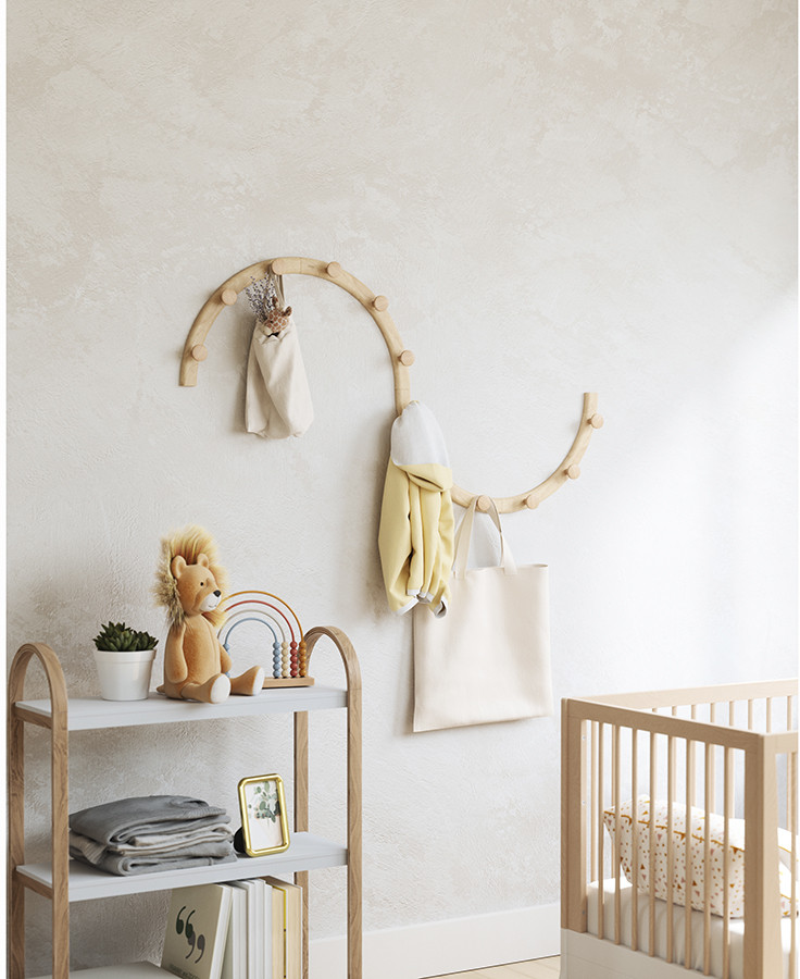 Вешалка настенная Slinka состоит из четырех элементов дугообразной формы, которые можно размещать любым удобным образом, в зависимости от дизайна помещения и его площади. Каждая часть имеет по три крючка для хранения вещей.