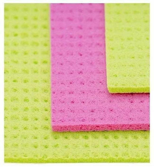 Салфетки губчатые, хозяйственные, универсальные для уборки на кухне и в ванной. Очень хороши как тряпка для пыли: пыль приклеивается к целлюлозе, при этом легко споласкивается. Одна салфетка губчатая «Абсорбер» заменит вам 2 кухонные тряпки, мокрую и сухую: смоченная водой, она одновременно и моет, и вытирает влагу. Плотные и толстые: салфетки из целлюлозы на 30% толще, чем обычная тряпка губчатая целлюлозная. За счет повышенной плотности и армирующей сетке не крошатся и не ломаются. Если тряпки для уборки приходится прятать, то красивый Абсорбер можно оставлять на виду. Стороны салфетки имеют разные цвета: сначала можно использовать одну сторону, затем перевернуть на другую.