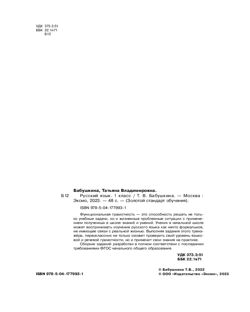 Русский язык. Функциональная грамотность. 1 классБабушкина Татьяна Владимировна +7