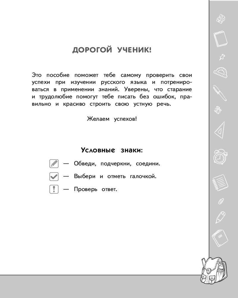 💳 Оплатить за товар можно при получении 🇰🇿 Есть бесплатная доставка по Казахстану от 1 дня 🎁 Копите бонусы с каждой покупки Серия: Золотой стандарт обучения Данный тренажёр предназначен для учащихся 1 класса общеобразовательных школ. Основная цель этого пособия — закрепление знаний, полученных на уроках русского языка, и их применение не только во время контрольных или проверочных работ, но и в реальной жизни. |