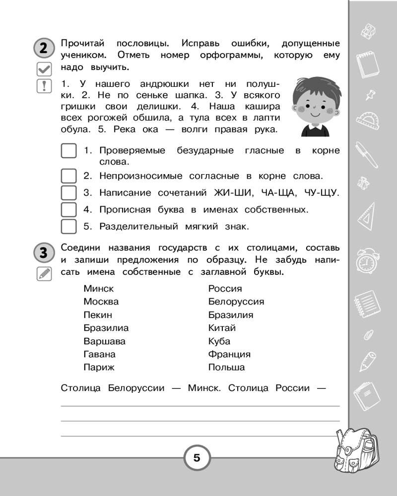 💳 Оплатить за товар можно при получении 🇰🇿 Есть бесплатная доставка по Казахстану от 1 дня 🎁 Копите бонусы с каждой покупки Серия: Золотой стандарт обучения Тренажёр создан с целью научить третьеклассника применять на практике полученные знания. Каждая тема содержит задания как на самостоятельную проверку знаний, так и на их применение для решения самых разных практических задач. Выполнение заданий будет способствовать развитию не только языковой и речевой грамотности школьника, но и его функциональной грамотности. |