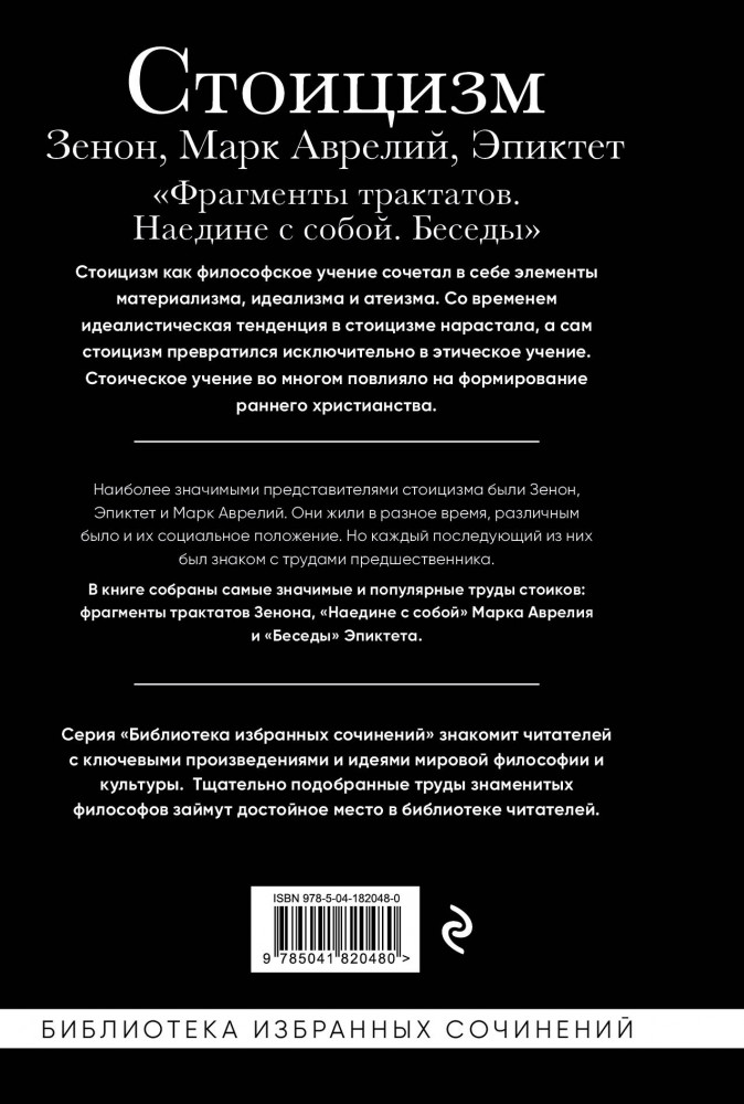 💳 Оплатить за товар можно при получении 🇰🇿 Есть бесплатная доставка по Казахстану от 1 дня 🎁 Копите бонусы с каждой покупки Серия: Библиотека избранных сочинений Наиболее значимыми представителями стоицизма были Зенон, Эпиктет и Марк Аврелий. Они жили в разное время, различным было и их социальное положение. Но каждый последующий из них был знаком с трудами предшественника. |