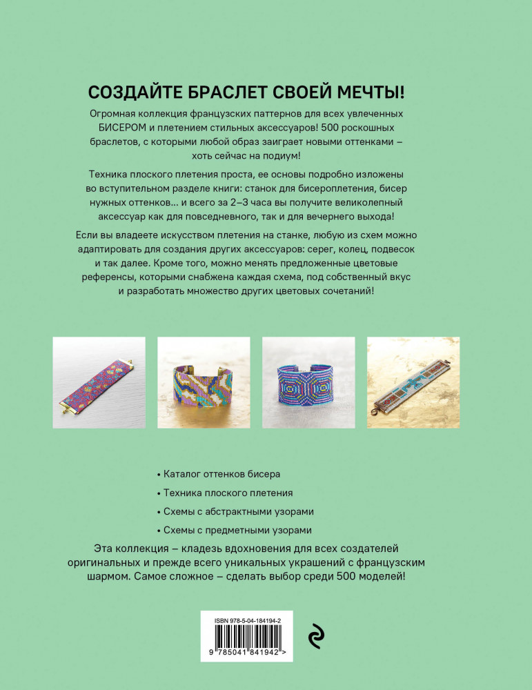 Бисероплетение. 500 французских схем для плетения на станке. Фэшн-дизайн аксессуаров с цветовыми палитрами-30% +245
