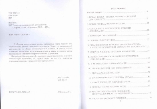 Автор Теории организационной деятельности Г. Ваниев в статьях собранных в этом сборнике, через призму своей теории рассуждает и о текущих геополитических проблемах и о насущных проблемах хозяев бизнеса в СНГ и о многих др. вещах которые затрагивает новая теория организационного управления. Есть интересные мысли про место кибернетики в ряду наук об управлении.