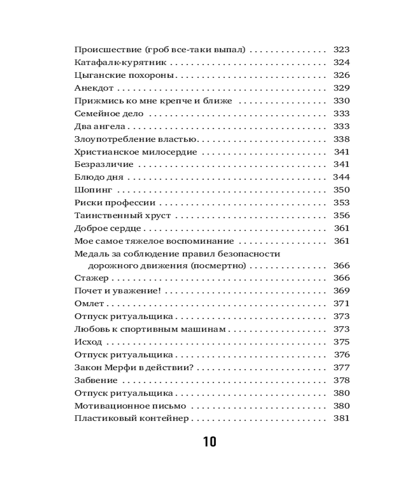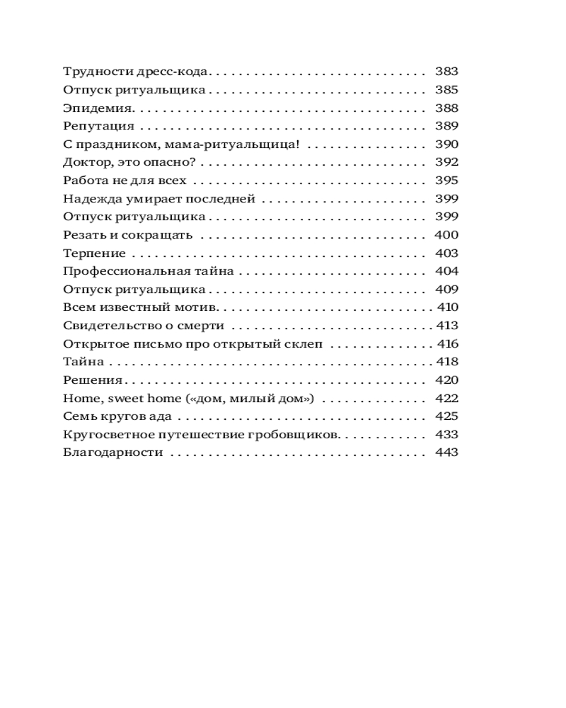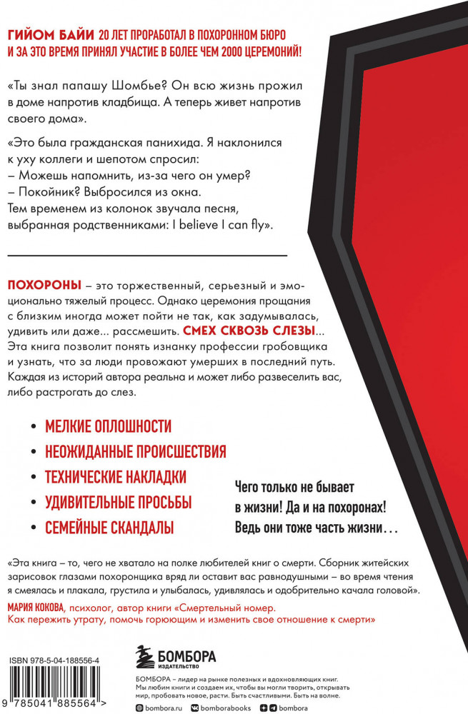 «Эта книга — то, чего не хватало на полке любителей книг о смерти. Сборник житейских зарисовок глазами похоронщика вряд ли оставит вас равнодушными — во время чтения я смеялась и плакала, грустила и улыбалась, удивлялась и одобрительно качала головой. Эта смесь сериала «Клиент всегда мертв» и книги «Диковинные диалоги в книжных магазинах» позволит заглянуть за завесу похоронного дела и понять, что за люди провожают умерших в последний путь«. — Мария Кокова, психолог, автор книги «Смертельный номер. Как пережить утрату, помочь горюющим и изменить свое отношение к смерти»