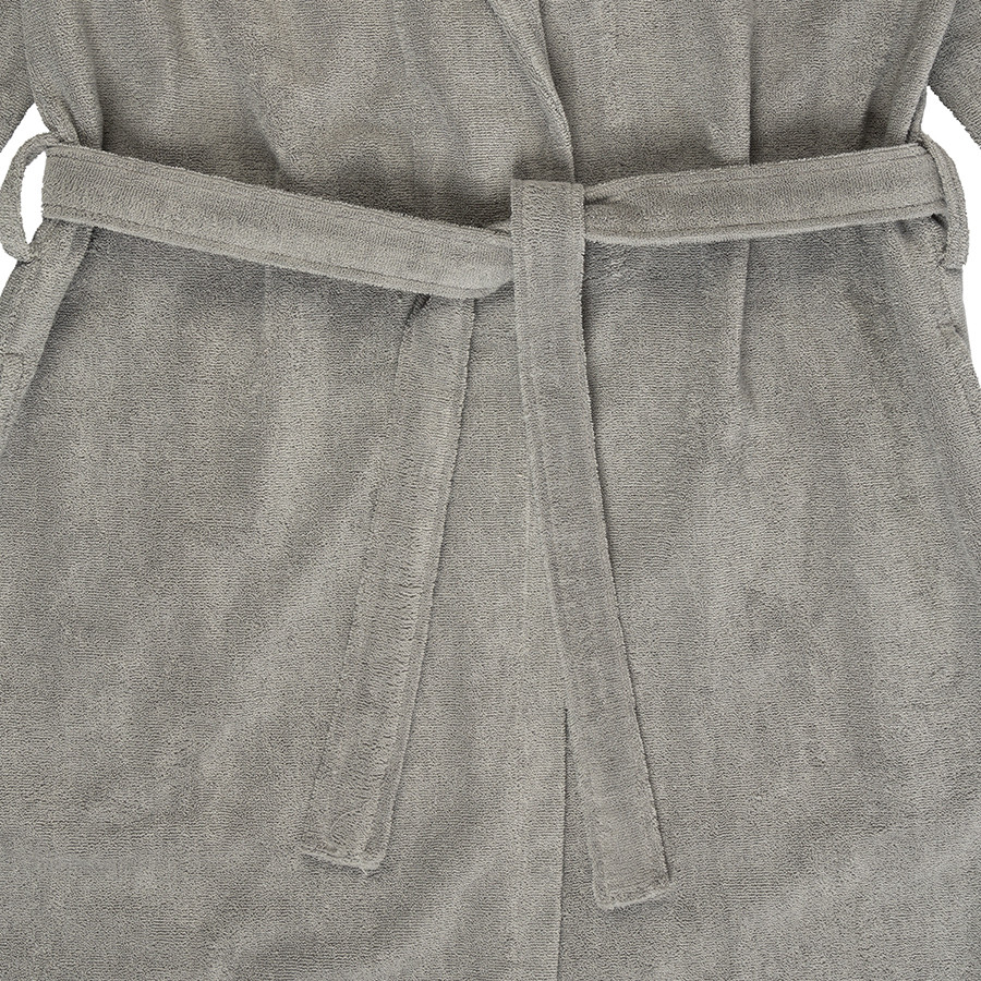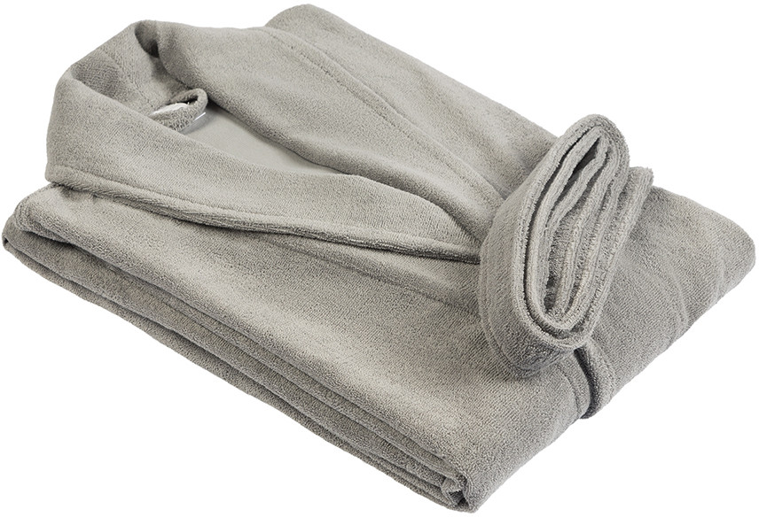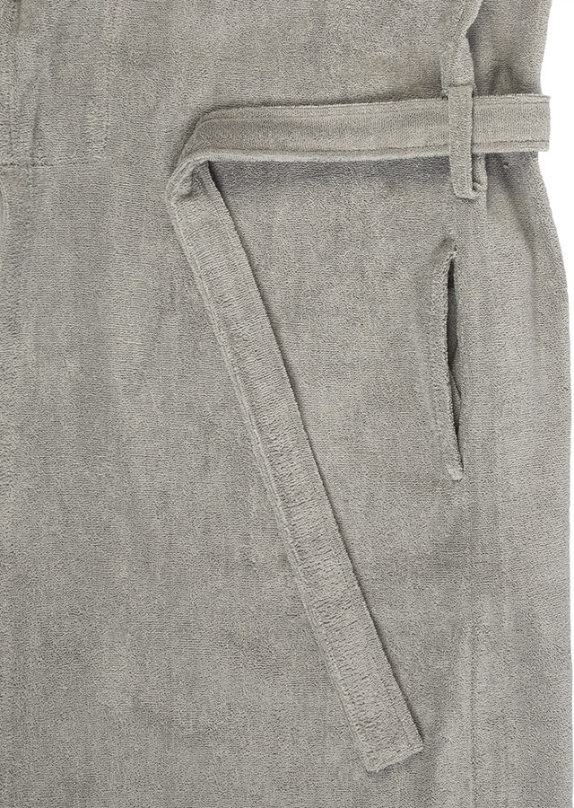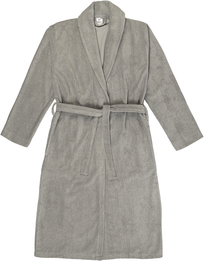 Халат махровый серого цвета из коллекции «Essential» подарит чувство комфорта после ванны и душа. Мягкая, при этом прочная ткань изготавливается из лучших сортов длинноволокнистого хлопка методом тщательного прочесывания, что значительно улучшает эксплуатационные характеристики готового изделия. Материал устойчив к износу, быстро впитывает влагу, оставляя приятное ощущение свежести и чистоты. Халат хорошо держит форму и сохраняет привлекательный вид после множества стирок. Модель с шалевым воротником дополнена двумя карманами и широким поясом.