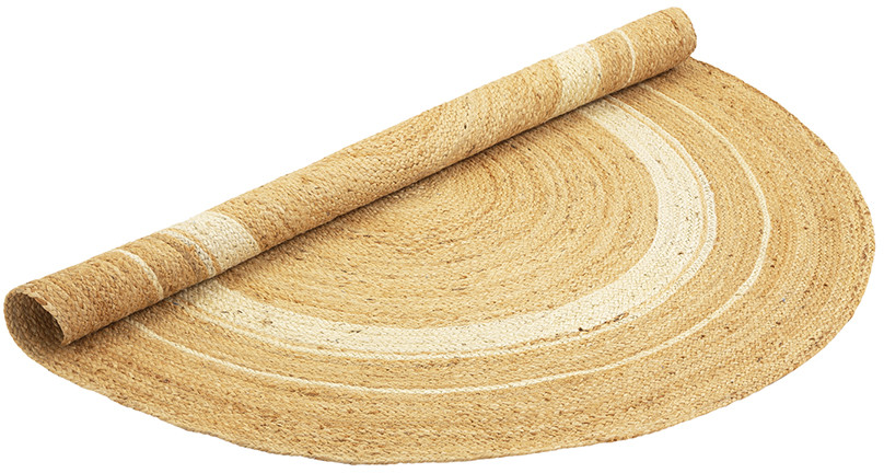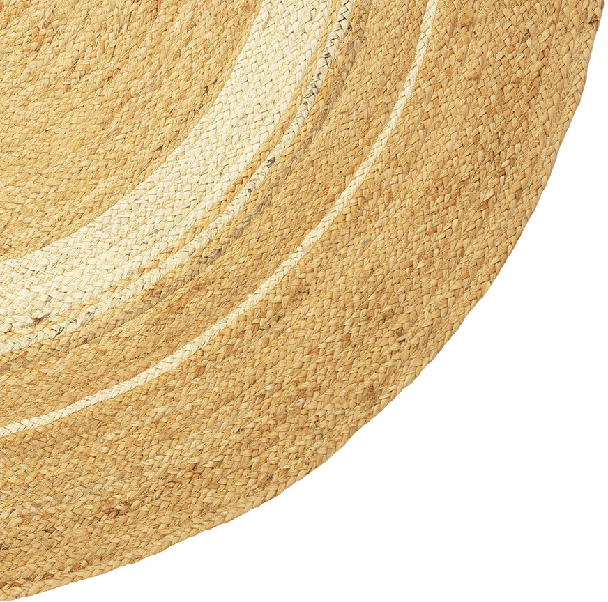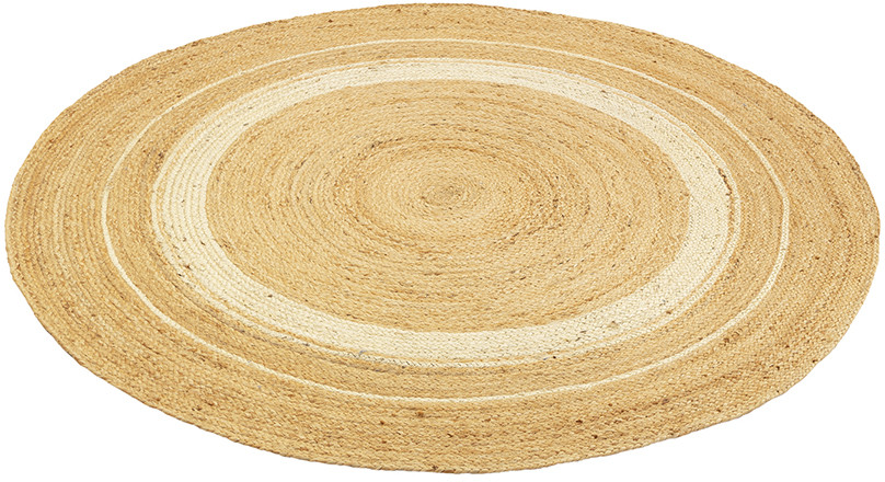 Ковер из джута круглый из коллекции Ethnic — отличное сочетание традиционного дизайна и натуральных материалов. Естественный оттенок и отсутствие дополнительных элементов в виде бахромы и сложных узоров делают это напольное покрытие универсальным. Такой ковер прекрасно вписывается в современные интерьеры и эклектичные пространства, создавая ощущение уюта и тепла домашнего очага. Белые вставки освежают дизайн и помогают в расстановке цветовых акцентов в оформлении. Джутовые волокна отличаются высокой прочностью, могут выдерживать большие нагрузки и сохраняют первоначальную форму на протяжении долгого времени. Это гарантирует готовому изделию практичность и долговечность. Материал не вызывает аллергических реакций, не накапливает статическое электричество и легко очищается.