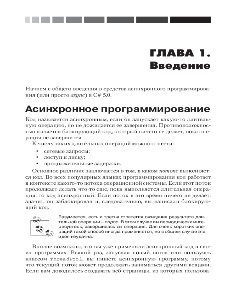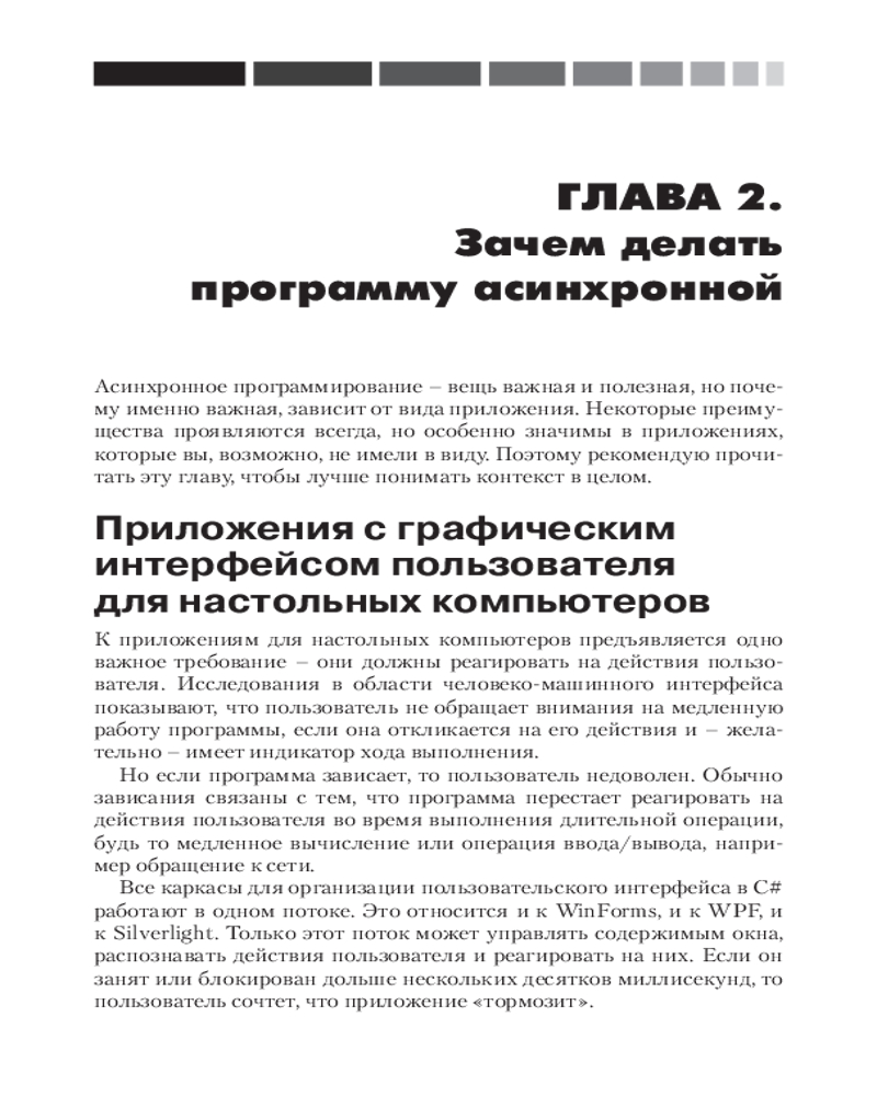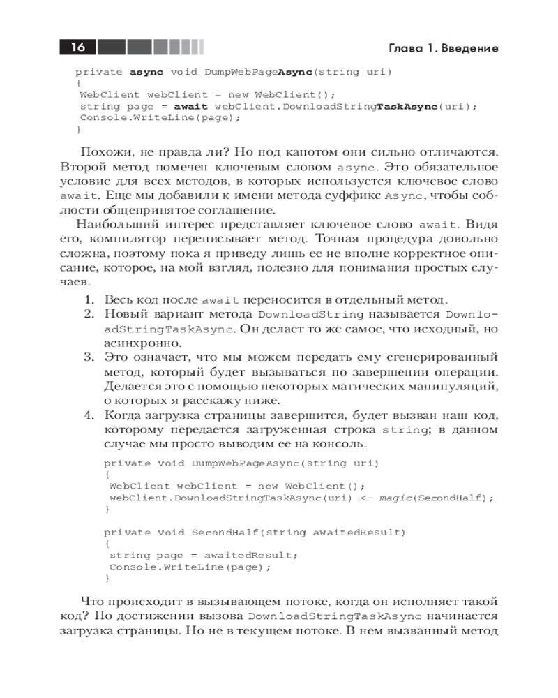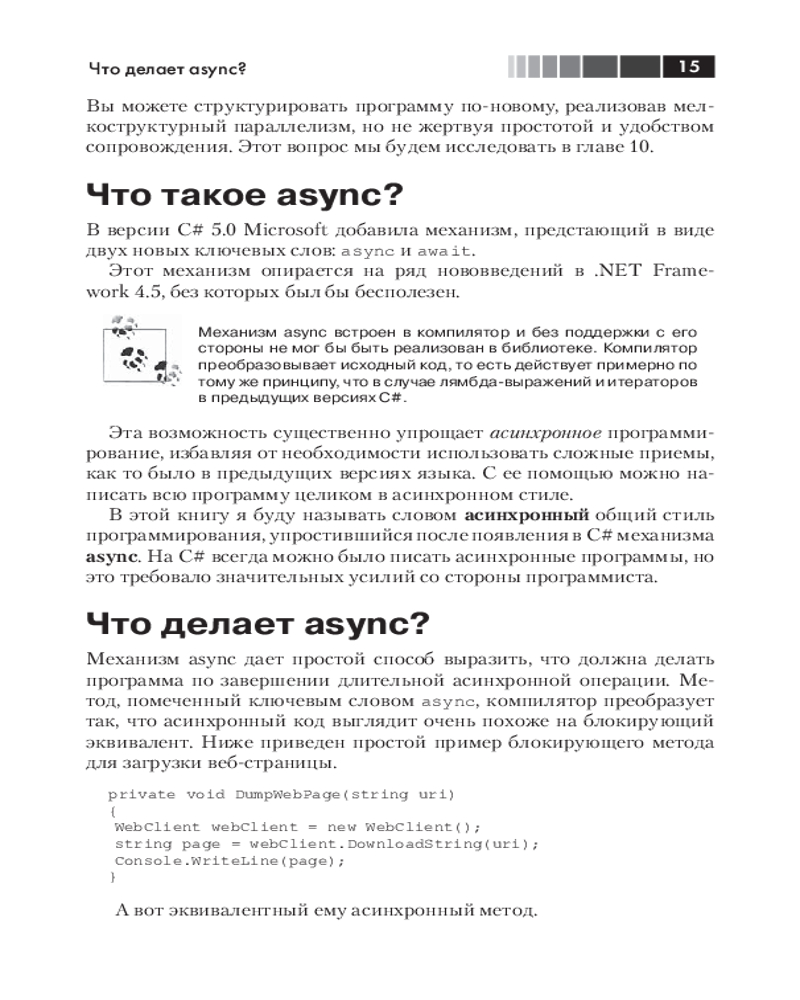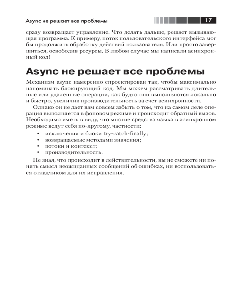 💳 Оплатить за товар можно при получении 🇰🇿 Есть бесплатная доставка по Казахстану от 1 дня 🎁 Копите бонусы с каждой покупки Из этого краткого руководства вы узнаете, как механизм async в С# 5.0 позволяет упростить написание асинхронного кода. Помимо ясного введения в асинхронное программирование вообще, вы найдете углубленное описание работы этого конкретного механизма и ответ на вопрос, когда и зачем использовать его в собственных приложениях. |