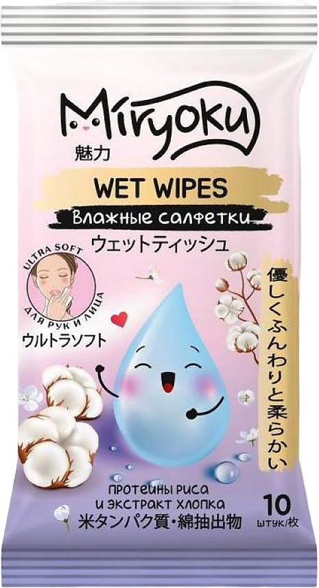 Miryoku Салфетки влажные «Протеины риса и экстракт хлопка»