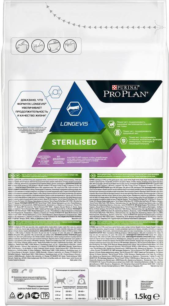 Purina Pro Plan Корм для стерилизованных кошек с индейкой старше 7 лет