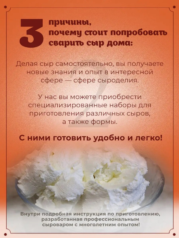 Набор с подробной инструкцией приготовления сыра. Приготовили адыгейский. Удался👍