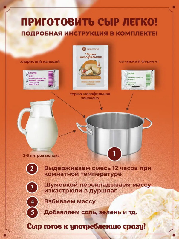 сычужный фермент, кальций и закваска на разный литраж молока, совсем не удобно