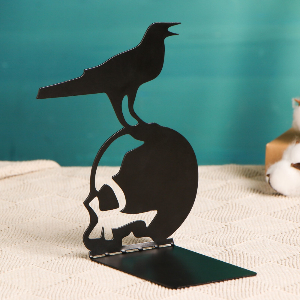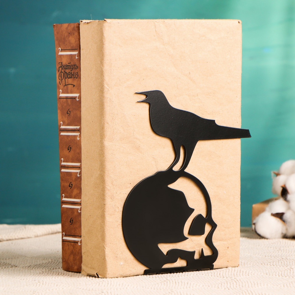 Хорошие сувениры Ограничитель-подставка для книг «Ворон на черепе»-40% +49 металлическая оригинальная сборка небольшая