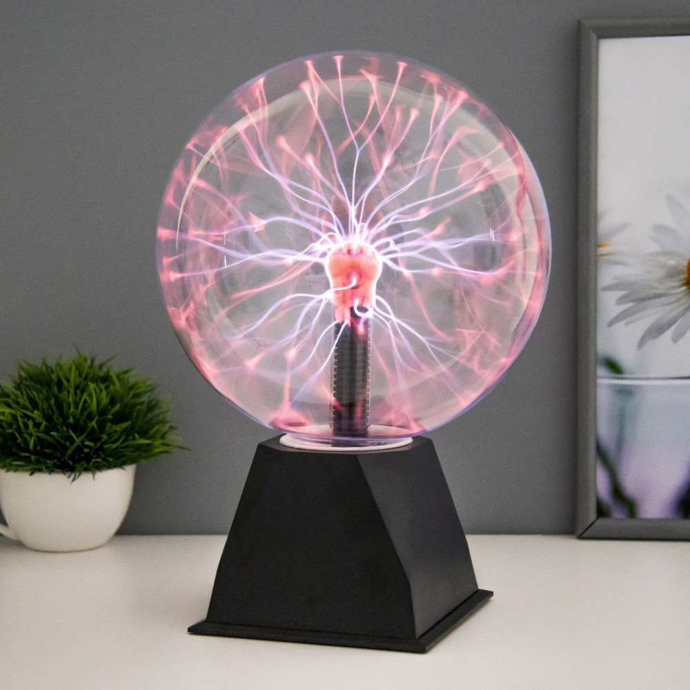 Плазменный шар (шар Теслы) — декоративный светильник, за которым интересно наблюдать. Высокочастотные токи сверкают и следуют за рукой при прикосновении. Смело касайтесь стеклянного шара и следите за маленькими молниями. Прибор светит неярко, поэтому его удобно использовать в качестве ночника. Светильник состоит из стеклянной сферы, разбавленного газа, электродов, высоковольтного устройства и выключателя. Прозрачная сфера изготовлена из высокопрочного закалённого стекла.