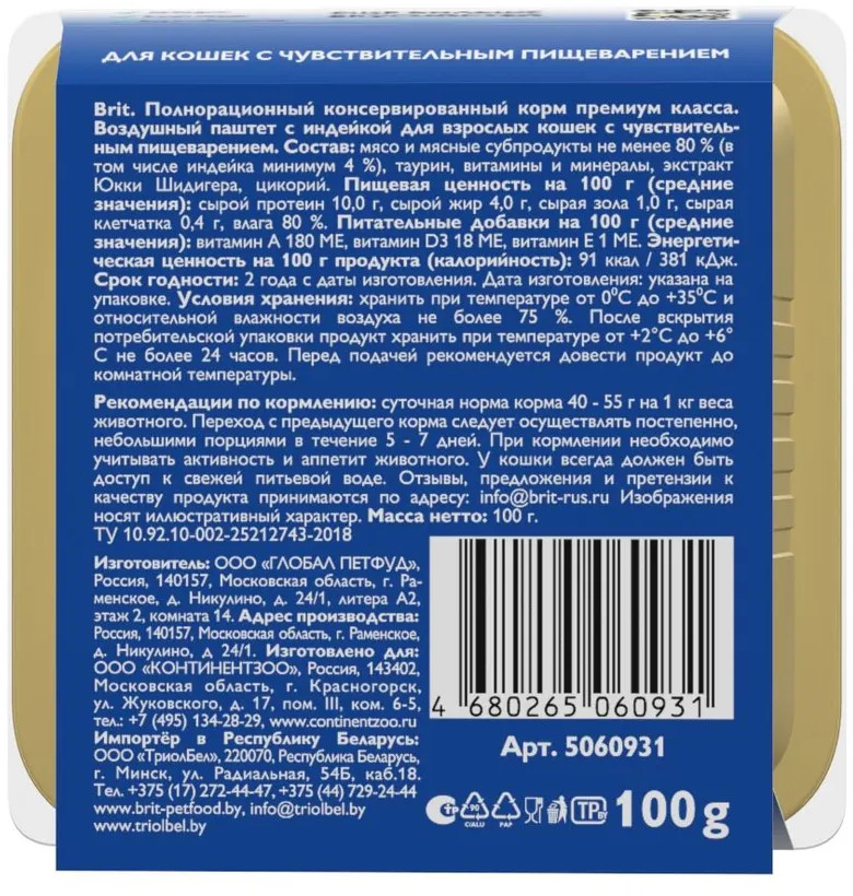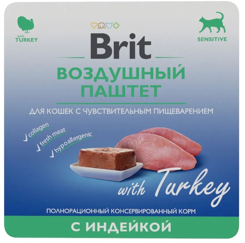 Brit Паштет для кошек с чувствительным пищеварением с индейкой