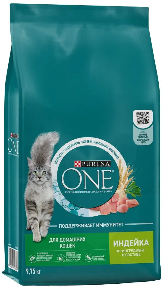 Purina ONE Корм сухой для домашних кошек с индейкой и цельными злаками