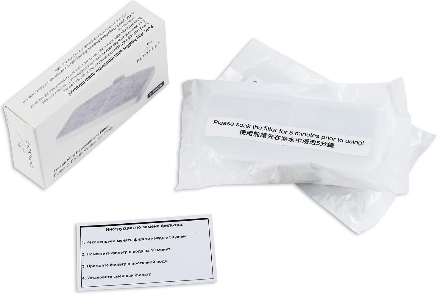 Petoneer Комплект фильтров для поилки «Fresco Mini Plus»В данный момент этот товар отсутствует в продаже. Возможно, у нас найдется аналогичный или похожий товар здесь. Комплект фильтров для умных поилок-фонтанов «Petoneer Fresco Mini и Mini Plus» — для самостоятельной замены. Каждая кассета рассчитана на 30 дней работы. В комплекте — 2 кассеты. Фильтр имеет 4-ступенчатую систему очистки. Первый слой — полипропилен, для шерсти и крупных фрагментов мусора. Второй — KDF (сплав высокоочищенных цинка и меди), очищающий воду от хлора. Третий, угольный, слой устраняет неприятные запахи. А ионообменная смола борется с солями жесткости. Комплект фильтров совместим с моделями «Petoneer Fresco Mini и Mini Plus». |