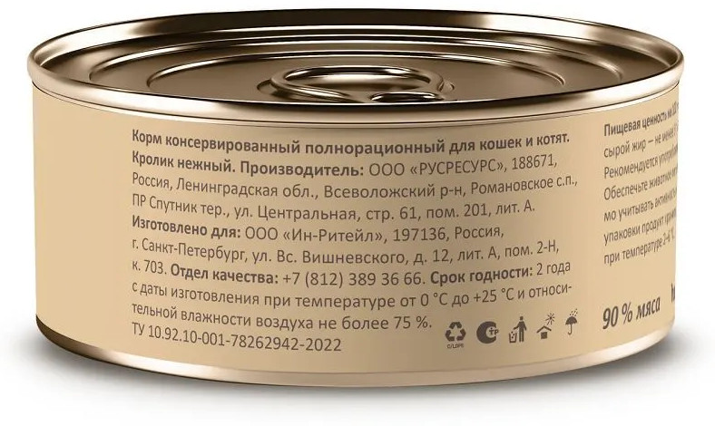 Отзывы «Консервы для кошек и котят «Кролик нежный»»