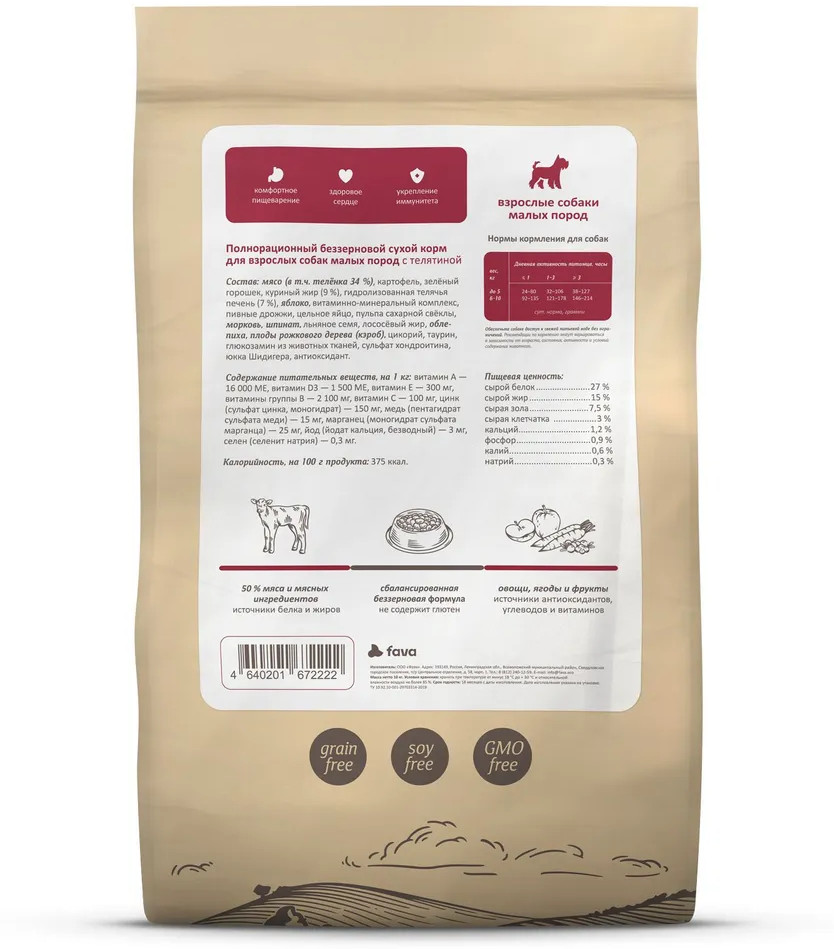 Отзывы «Корм для собак малых пород беззерновой с телятиной «Adult small breeds»»
