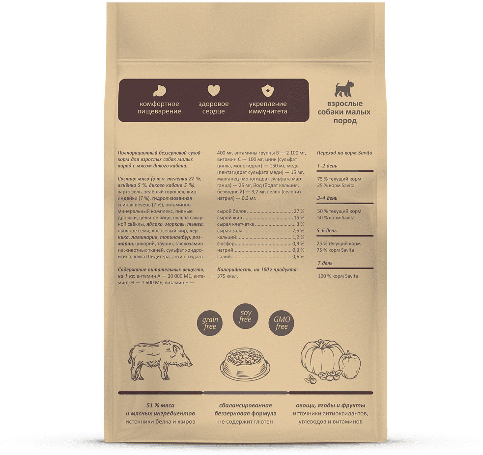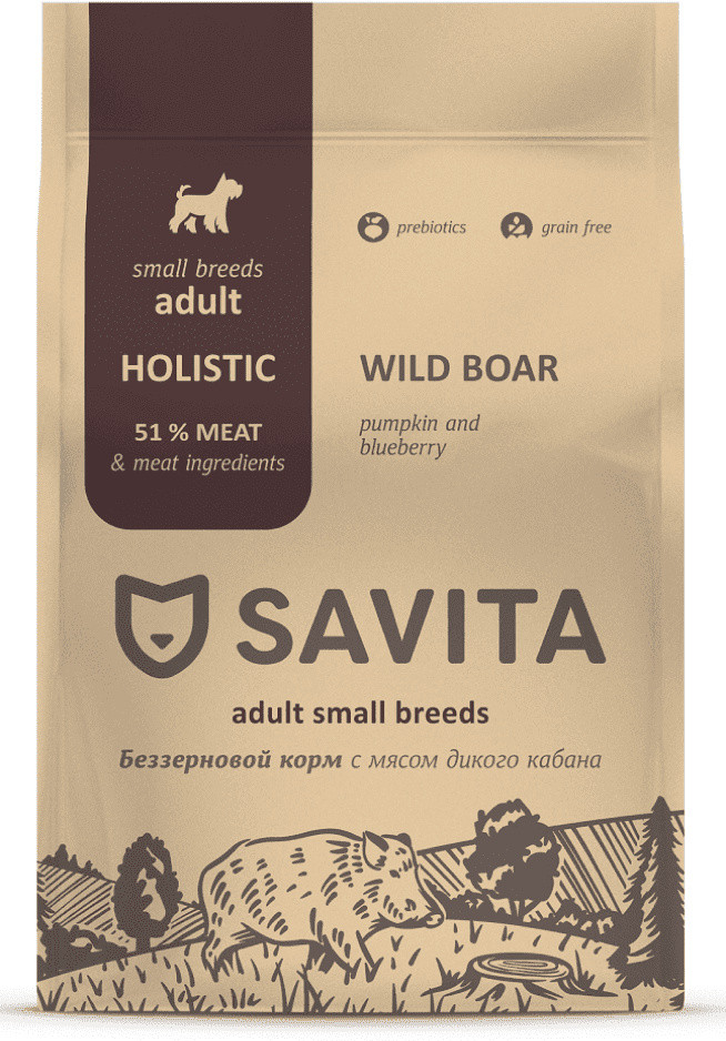 Savita Корм для собак малых пород беззерновой с мясом дикого кабана «Adult small breeds»