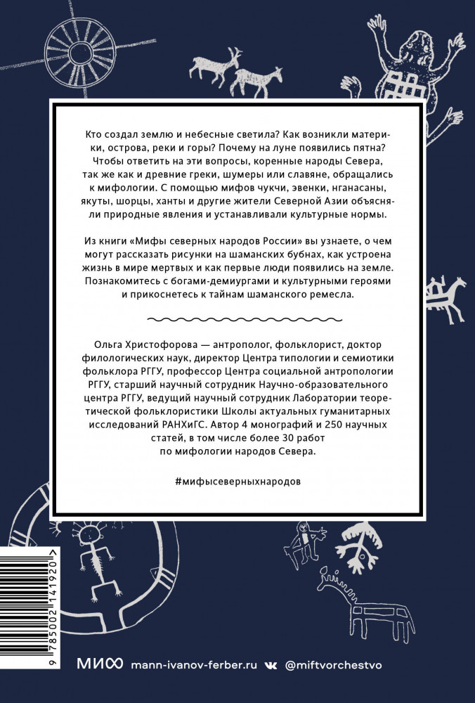 💳 Оплатить за товар можно при получении 🇰🇿 Есть бесплатная доставка по Казахстану от 1 дня 🎁 Копите бонусы с каждой покупки Серия: Мифы от и до. Россия Для большинства жителей европейской России Север, Сибирь и Дальний Восток — своего рода терра инкогнита. Мы мало знаем о жизни коренных народов этого региона и зачастую строим свое представление о них, основываясь на глубоко укоренившихся в массовом сознании, но абсолютно неверных стереотипах. Познакомиться с мифологией и культурой северных народов поможет книга известного российского антрополога и фольклориста Ольги Христофоровой. |