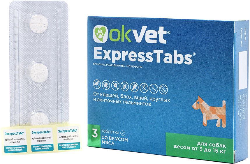 | OkVet Таблетки от клещей, блох, вшей и гельминтов «ExpressTabs»+246 (бонусов)