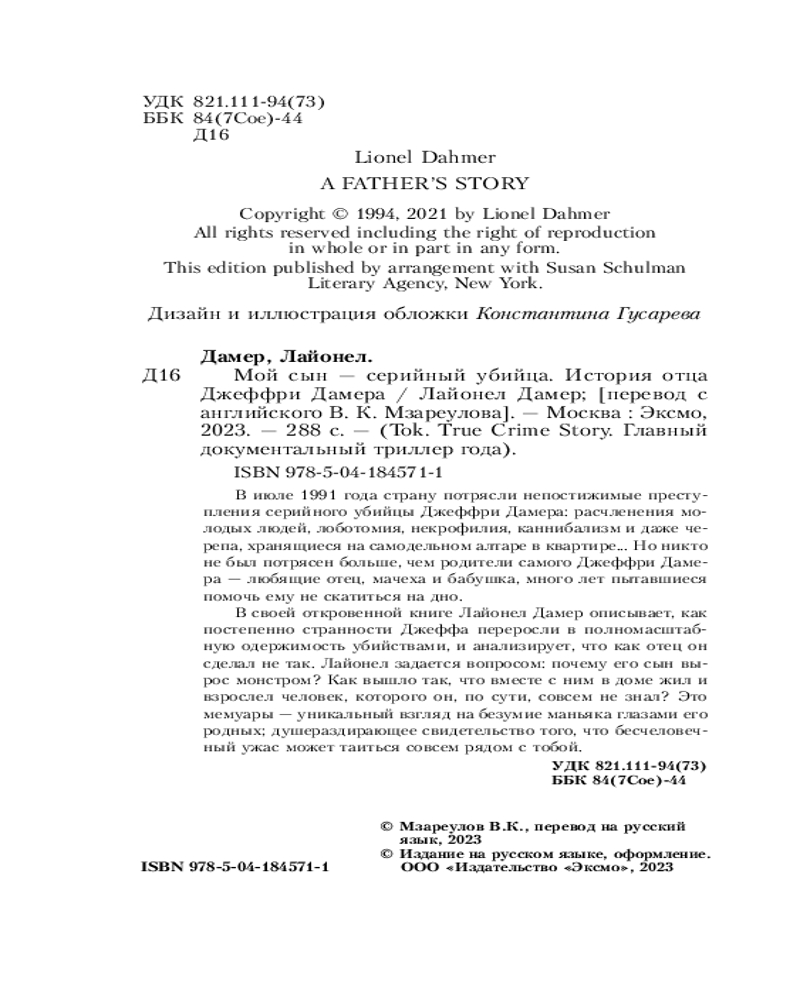 Мой сын — серийный убийца. История отца Джеффри Дамера+136 интересная история качество печати легко читается