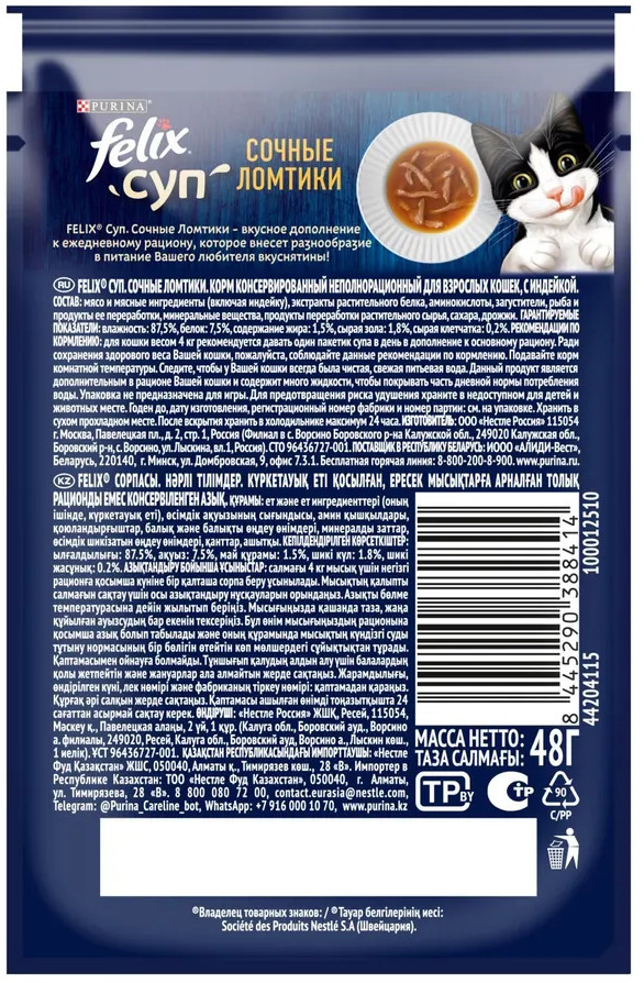 Felix Корм для кошек «Суп сочные ломтики с индейкой»
