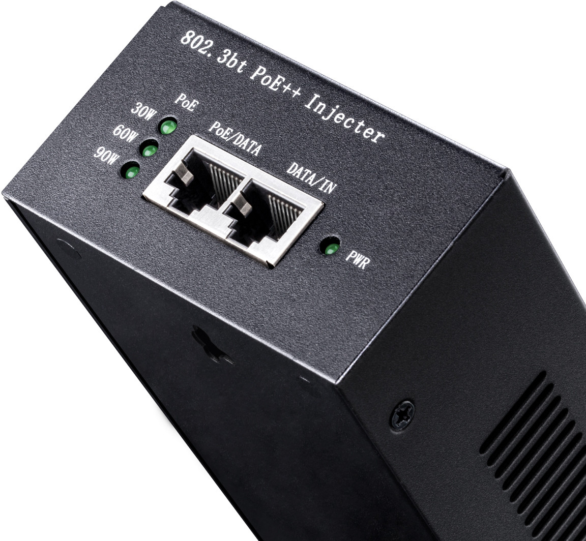 PoE++ порт (стандарт IEEE 802.3bt) поддерживает питание до 60 Ватт (2 пары) или до 90 Ватт (4 пары) на короткой дистанции, мощность питания на 100 м снижается до 51 Ватт (2 пары) или до 71 Ватт (4 пары). Устройства, для которых подойдёт такое питание через сеть Ethernet, это: конференц-системы с большим экраном, мощные точки доступа 4×4 802.11ax (WiFi 6), PTZ FHD уличные камеры наблюдения c подогревом, большие аудио спикеры, крупные системы LED освещения , IP кодеры и IP декодеры потокового аудио/видео.