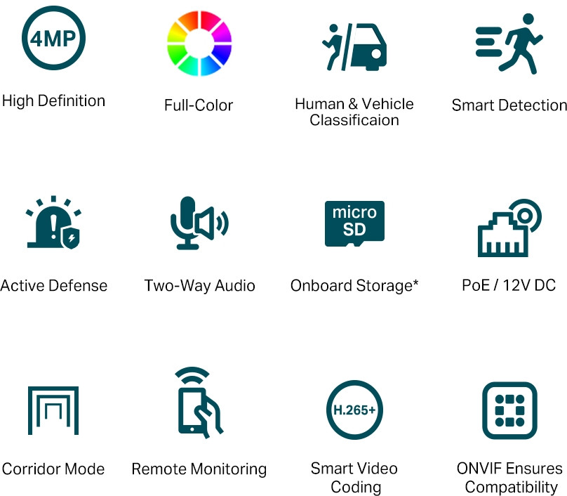 Камера TP-Link VIGI C440 (2.8mm) ведет запись по датчику движения, что экономит место на карте памяти и в облачном хранилище. Поддержка PoE позволяет использовать один канал для питания и передачи данных. Устройство поддерживает интеллектуальную систему для обнаружения движения, людей, вторжения в область, пересечения линии. Благодаря кодировке H.264, H.264+, H.265+, H.265 вы получаете чистое изображение после сжатия без потери качества. Это экономит место в хранилище, уменьшая нагрузку на сеть.
