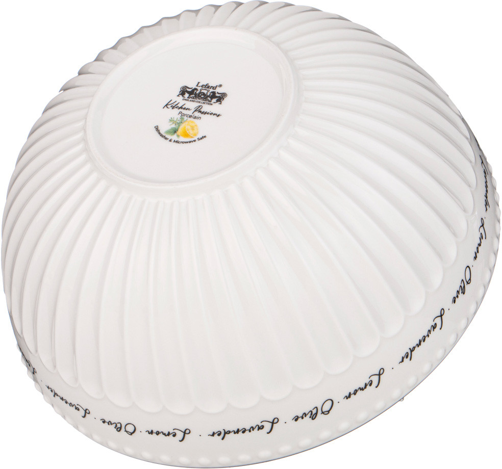 Lefard Салатник «Kitchen Passions»В данный момент этот товар отсутствует в продаже. Возможно, у нас найдется аналогичный или похожий товар здесь. Серия: Kitchen Passions ТМ Lefard предлагает новую коллекцию посуды всем, для кого процесс приготовления стал страстью, кто с удовольствием собирает за своим столом родных и близких и радует их кулинарными шедеврами. Коллекция «Kitchen Passions» — это качественный прочный фарфор, гладкая и сверкающая глазурь, новые рельефные формы, удобные и оптимальные размеры тарелок, салатников, чайных пар, любимые дизайны с изображением лимонов, лаванды, оливок, овощей… Яркая упаковка. Отличный подарок. Все изделия прошли сертификацию, безопасны при контакте с пищевыми продуктами. Можно смело мыть в посудомоечной машине, использовать в микроволновой печи. |