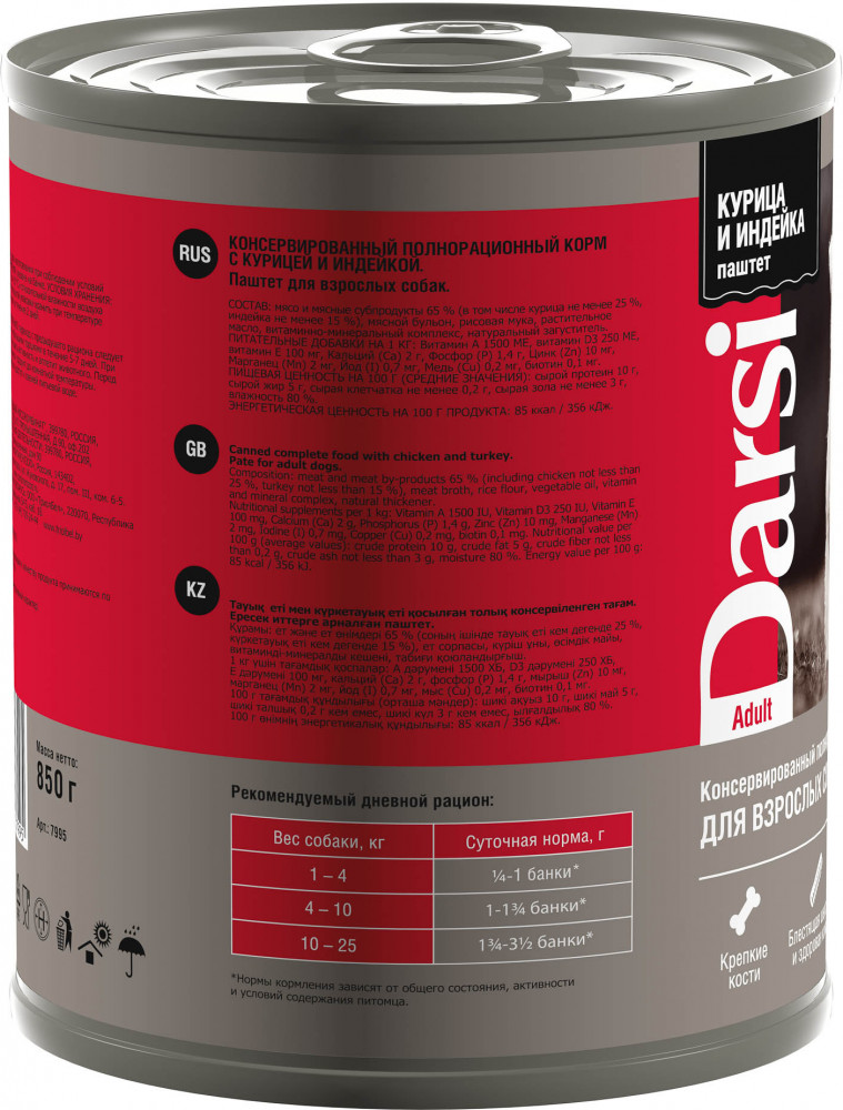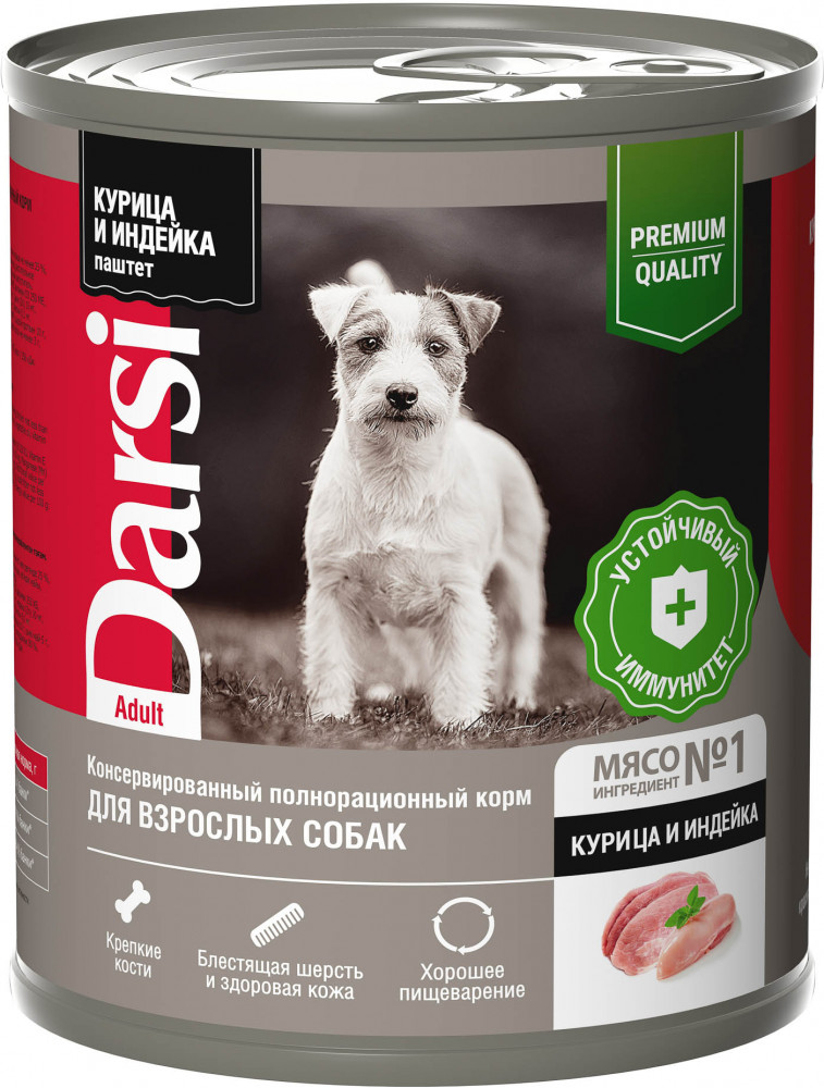 Darsi Корм для взрослых собак полнорационный «Паштет с курицей и индейкой»