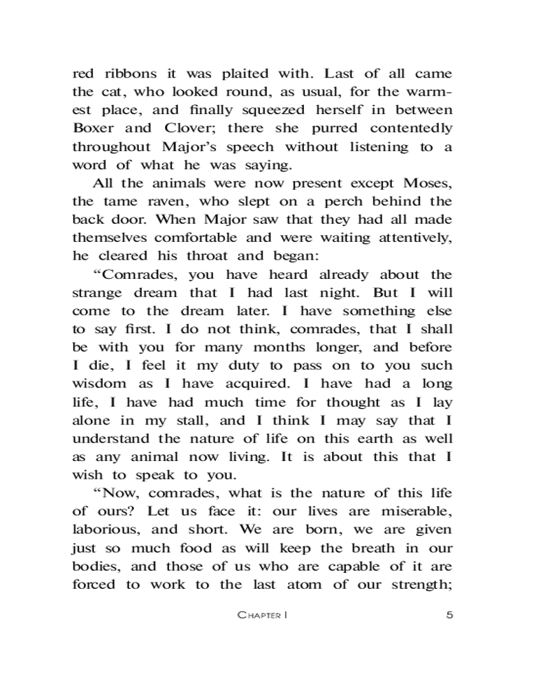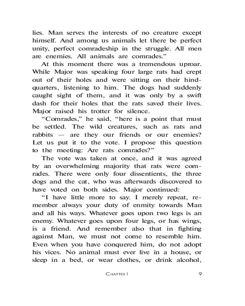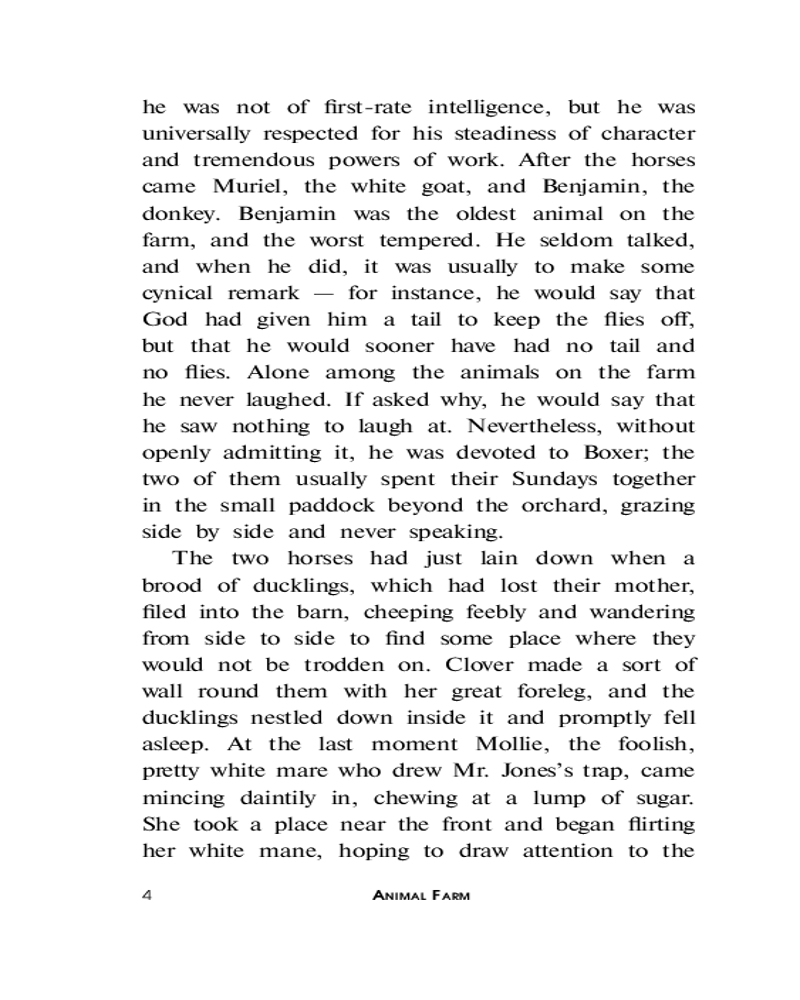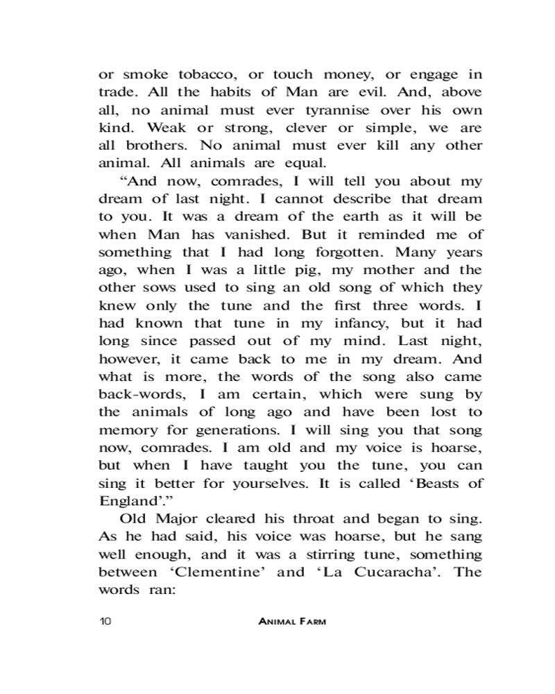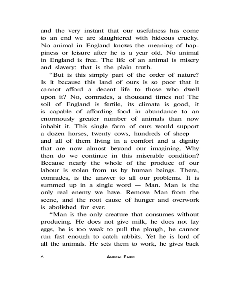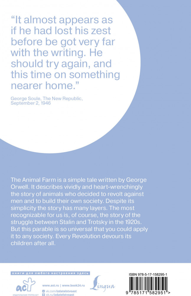 Animal Farmкачество печати лексика В данный момент этот товар отсутствует в продаже. Возможно, у нас найдется аналогичный или похожий товар здесь. Серия: Lingua Moderna Добро пожаловать на «Скотный двор»! Здесь животные построили своё, справедливое, общество. Мы живём бок о бок, мы совершенно равны, и вместе трудимся на общее благо. Просторные загоны, честная трудовая пайка, сообщество единомышленников — здесь будет всё, о чем только можно мечтать. И никаких назойливых людей. Здесь больше не свистнет бич в руках человека, и некому будет понукать честных трудяг. Не упустите свой шанс присоединиться к нам и наслаждаться жизнью вместе с нами! Сделаем весь мир таким, как «Скотный двор»! |