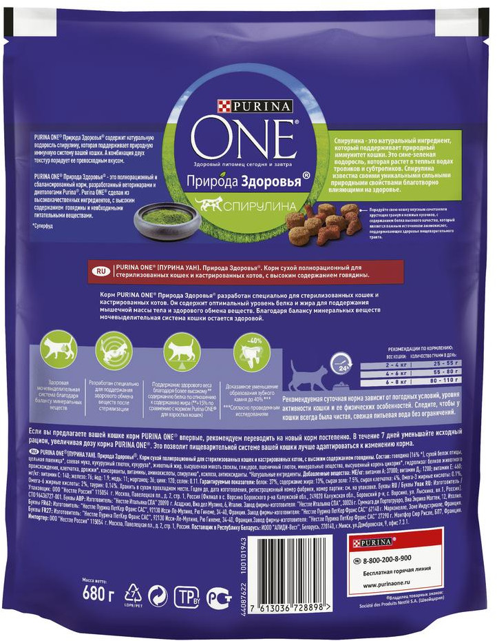 Purina ONE Корм для взрослых стерилизованных кошек с говядиной «Природа здоровья»