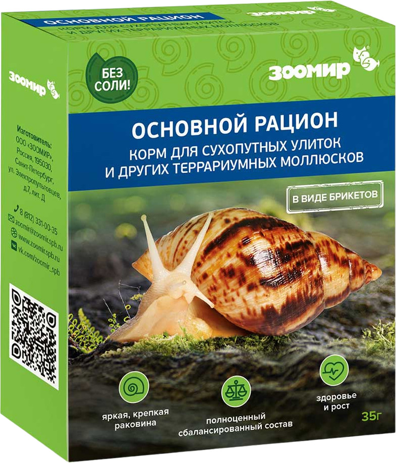 Зоомир Корм для сухопутных улиток и других террариумных животных «Основной рацион»-20% +9 аппетитность сбалансированный состав аромат улучшение панциря формат брикетов