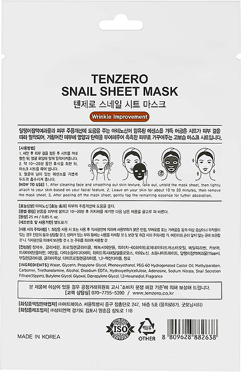 Tenzero Маска для лица восстанавливающая с муцином улитки «Snail»
