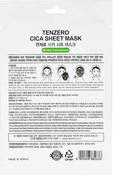 Tenzero Маска для лица против несовершенств с экстрактом центеллы азиатской «Cica»