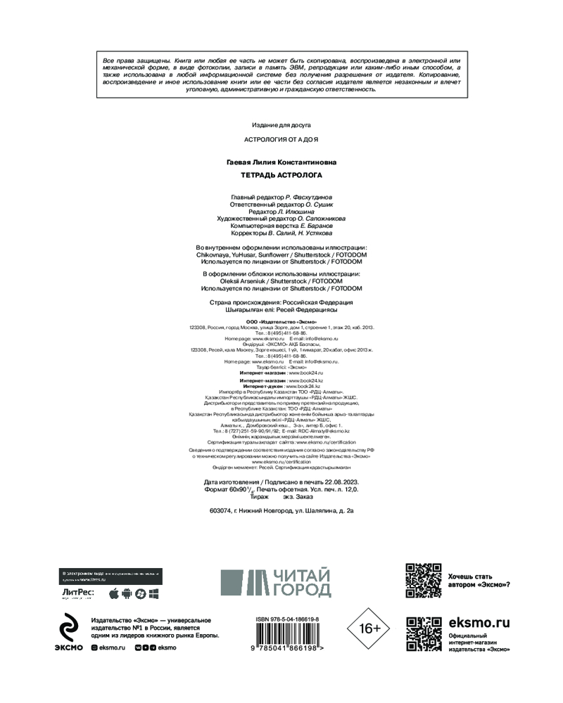 💳 Оплатить за товар можно при получении 🇰🇿 Есть бесплатная доставка по Казахстану от 1 дня 🎁 Копите бонусы с каждой покупки Серия: Астрология от А до Я Лилия Гаевая — основатель Школы адекватной астрологии, профессиональный астролог. 2000+ выпускников, более 12 лет опыта работы, более 400 000 подписчиков. Автор бестселлера «Адекватная астрология. Как найти свое предназначение». Личный астролог звезд, селебрити и блогеров-миллионников. |