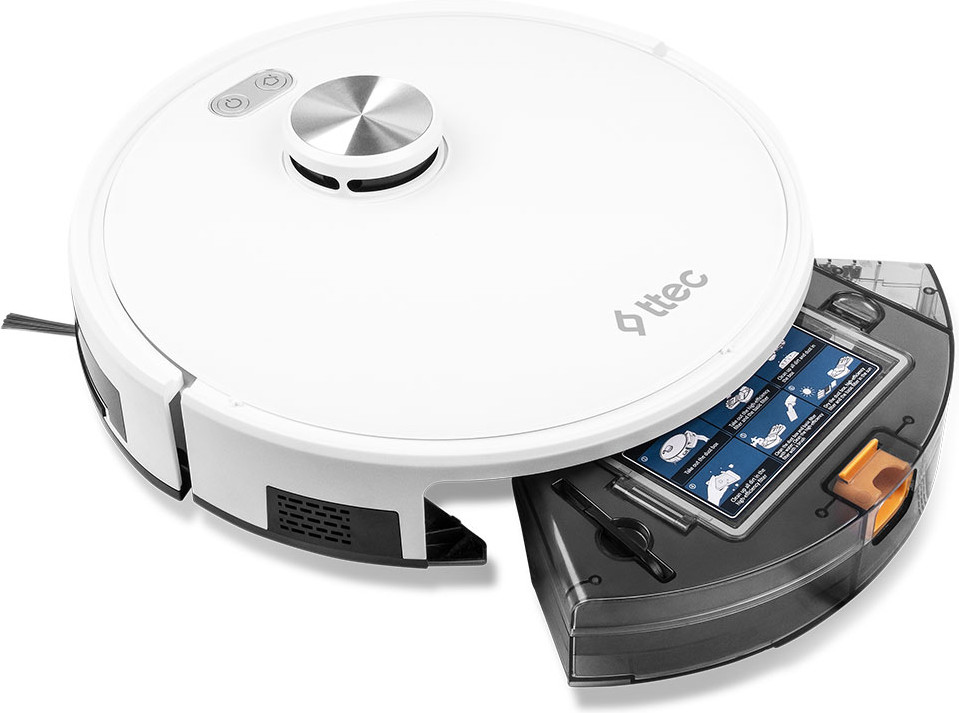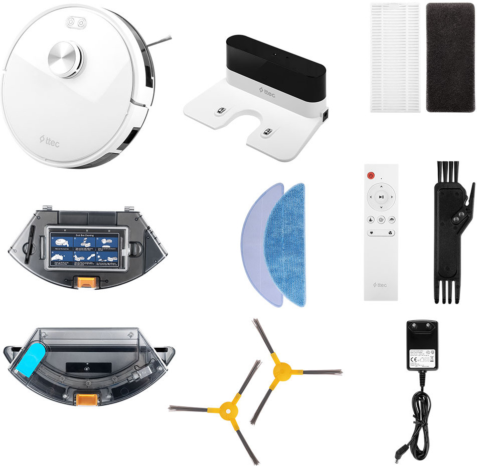 Автоматическая подзарядка при низком уровне аккумулятора и возобновление уборки благодаря технологии Charge&Clean. Обеспечение контроля через удобное мобильное приложение ttec по Wi-Fi или с пульта дистанционного управления. Контейнер для пыли с противоаллергенной защитой и фильтром HEPA.