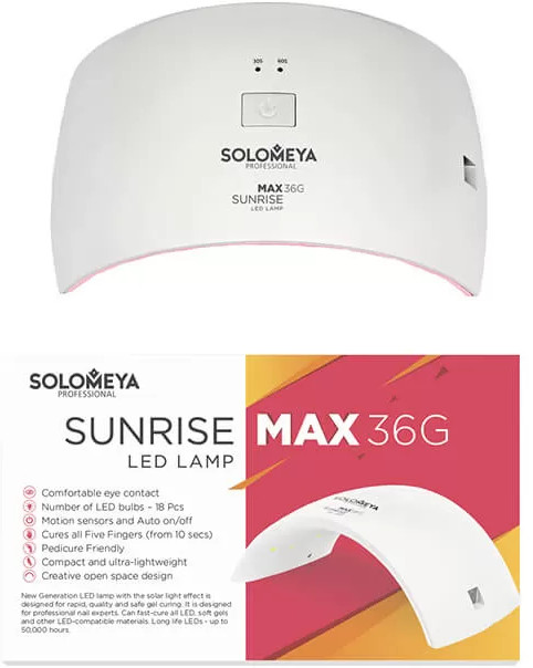 Solomeya Лампа для сушки ногтей «Sunrise Max 36G Led Lamp»В данный момент этот товар отсутствует в продаже. Возможно, у нас найдется аналогичный или похожий товар здесь. Быстрая и качественная полимеризация любых видов гель-лаков, поли-гелей и гелей для наращивания Автоматическое включение и выключение за счет наличия инфракрасного датчика. Стильный гладкий корпус и современный дизайн! Лампа мощностью 36 Ватт нового поколения надежно работает без вреда для здоровья глаз и кожи! Идеально для маникюра и педикюра, так как лампа очень легкая. |