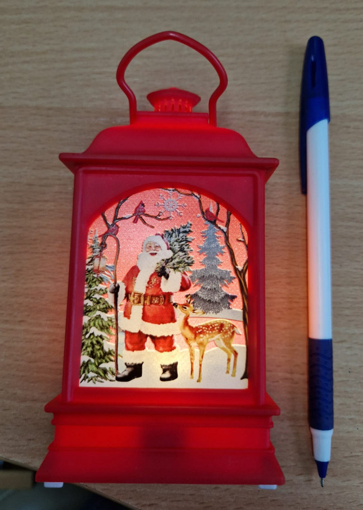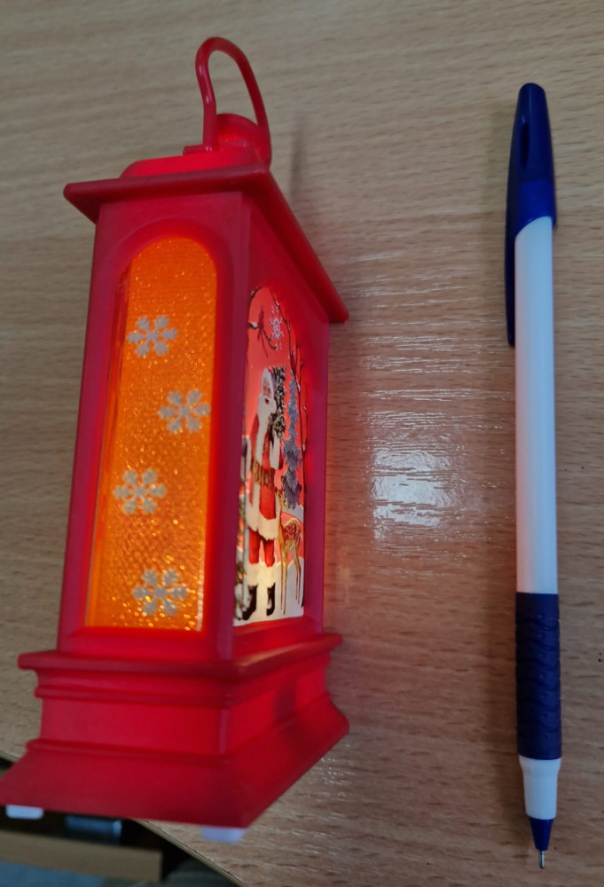 Сперва думала фонарик больше размером, примерно как настоящие из фильмов))) Но, взяв линейку, поняла, что он малюсенький. Однако это его не портит, очень симпатичный маленький ночник, который создаёт новогоднее настроение.