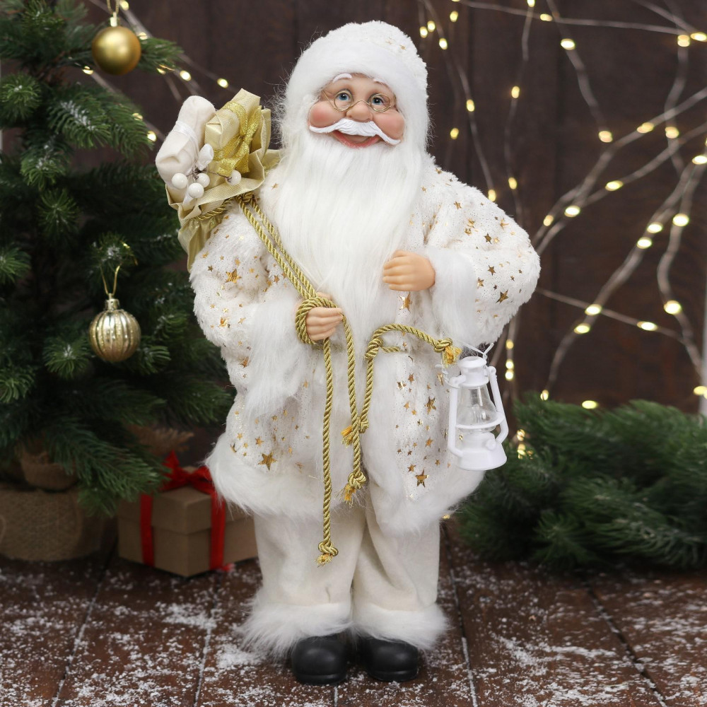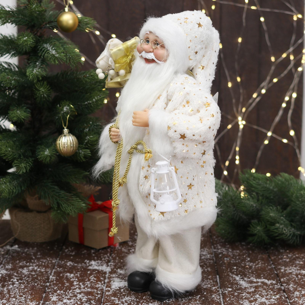 Зимнее волшебство Фигурка «Дед Мороз в белой звёздной шубке и с фонарём»-25% +187
