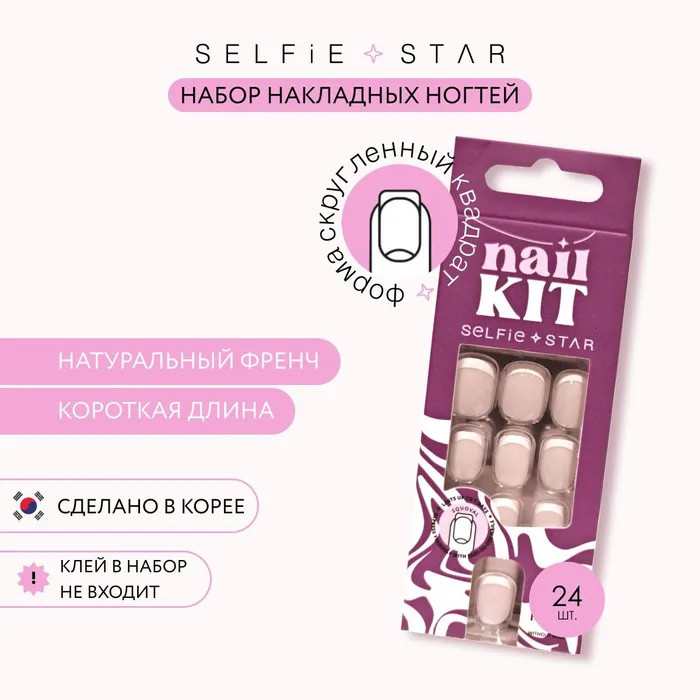 Набор накладных ногтей от корейского бренда Selfie Star – это быстрая, удобная и безопасная альтернатива гель-лаковому покрытию. Создай свой неповторимый маникюр всего за несколько минут и наслаждайся результатом до 7-ми дней! Набор «Натуральный френч», короткой длины – это классический маникюр, который всегда в тренде!
