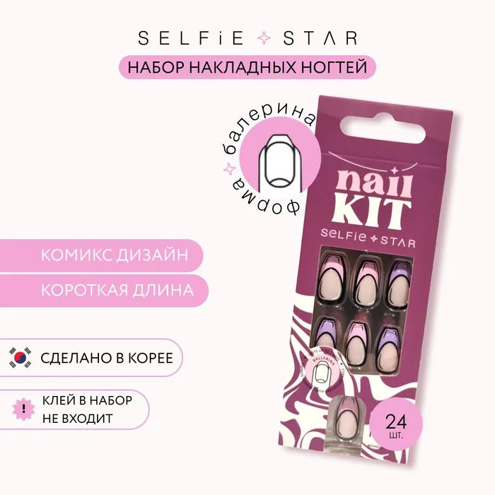 Набор накладных ногтей от корейского бренда Selfie Star – это быстрая, удобная и безопасная альтернатива гель-лаковому покрытию. Создай свой неповторимый маникюр всего за несколько минут и наслаждайся результатом до 7-ми дней! Набор «Комикс дизайн», короткой длины – это свежий и оригинальный вариант, который добавит игривости и энергии вашему образу.
