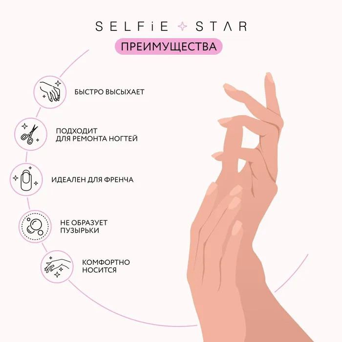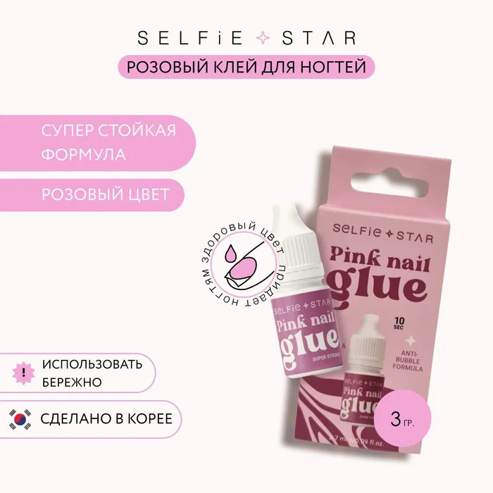 Selfie Star Клей для накладных ногтей супер стойкий «Pink nail glue»-25% +67